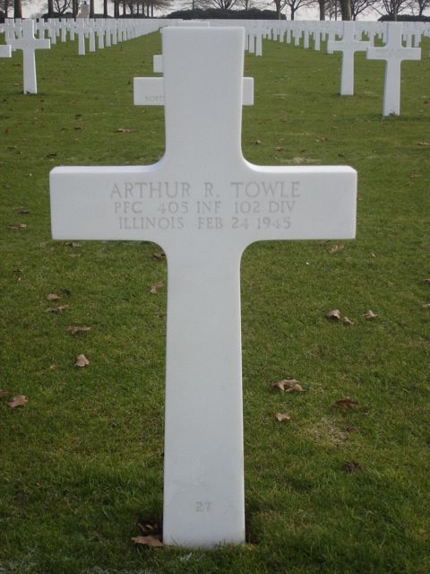 Arthur was killed in the vicinity of Lovenich and Erkelenz, Heinsberg district, North Rhine-Westphalia, in the 102nd Division“s attack over the Roer River.Source of information: Astrid van Erp, www.wwiimemorial.com, www.fold3.com, www.findagrave.com