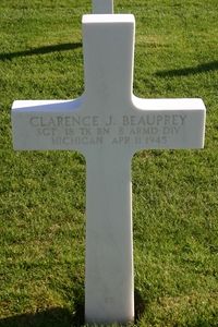 Sgt Clarence J. Beauprey worked at the Ford Motor Company sawmill in L'Anse, Michigan.He was awarded the Silver Star Medal posthumously. The citation cited: For gallantry in action against the enemy while serving with the 18th Tank Battalion, 8th Armored Division, in Germany from 22 January 1945 to 11 April 1945. Sgt Beauprey insisted on accompanying his unit overseas, despite a back injury. During many engagements he was unable to straighten up, due to the injury, but he remained at his post performing his duties in a superior manner. On 11 April 1945 he refused to remain behind for medical attention and took his tank into the attack. During the engagement he was called upon to relieve infantry elements pinned down by small arms and machine gun fire. Without regard for anti-tank and rocket fire, he moved into position and destroyed the guns holding up the infantry. He had just completed this mission when his tank received a rocket shell through the turret. Sgt Beauprey was fatally wounded. His great personal courage and devotion beyond the call of duty were an inspiration to all and reflect great credit on himself and the Armed Forces of the United States.