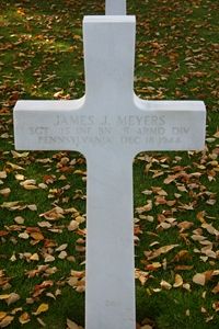 Sgt James J. Meyers was hit by artillery fire while leading his platoon.His brother, George J. Meyers, was killed on 31 August 1944. He is buried next to him.