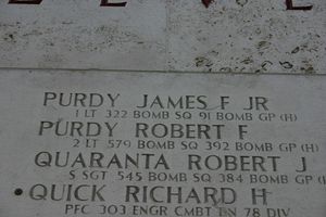 1st Lt James F. Purdy, Jr graduated from Seton Prep School in Orange, New Jersey.He received his basic training at Cochran field, Georgia and at subsequent airfields in Nashville, Tennessee, Decatur, Alabama, and Walnut Ridge, Arkansas. He received his wings and commission at Seymour, Indiana. He arrived in England on 3 February 1944.