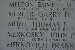 S/Sgt Thomas E. Merit was a graduate of Woodrow Wilson Junior High and attended Hoover High school. He was a civil service employe with the U.S. army engineering department.He received basic training at Sheppard Field, Texas and was sent to the Harlingen Army Gunnery School, Texas.