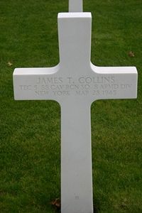 The reverse side of the picture mentions that it was taken a day before T/5 Collins was killed. The other man is R.W. Fox, the stepfather of Mr. Coert Blok who provided the photo.Source of information: Peter Schouteten, Terry Hirsch, www.wwiimemorial.com, www.8th-armored.org, The Daily Argus - 26 October 1945