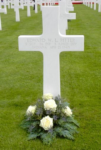 Edward W. L. Ritter was employed at the Kingsburry Ordnance plant before he enlisted on 21 January 1944. He received his training at Camp McClellan, Alabama and Camp Meade, Maryland before going overseas in June 1944.His remains were first buried in Zwickau, Germany.