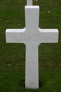 Pfc Ira S. Casey worked on a farm, before he enlisted on 30 December 1943 at Camp Shelby, Mississipppi.Source of information: Peter Schouteten, Astrid van Erp, Terry Hirsch, www.8th-armored.org, WWII Memorial, National Archives, www.ancestry.com - Headstone and Interment Record / Family Trees