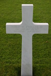 Pfc Philip W. Chillas, Jr. graduated from Pierre S. DuPont High School and was employed at Chambeers Works of the DuPont Company.He enlisted on 23 June 1944 at Fort Dix, New Jersey.