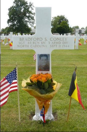 Sgt Bradford Conley was a waiter before he joined the Regular Army in Charlotte, North Carolina on 27 July 1940.He was the commander of a M8 Greyhound reconnaissance car. On 11 September the M8 Greyhound came under fire from a German Tiger tank in the town of Baelen, Belgium. The M8 exploded from a direct hit.