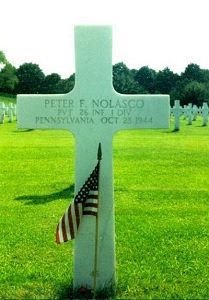 Pvt Peter F. Nolasco attended high school for 3 years and worked in a machine shop before heenlisted in Philadelphia, Pennsylvania on 10 December 1942 and went overseas April 1944.