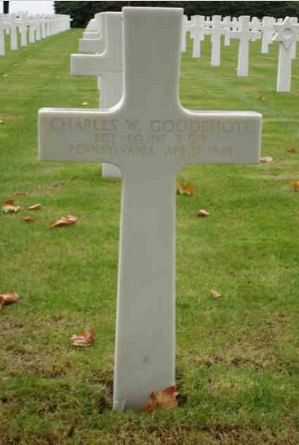 Charles Goodemote enlisted in Altoona, Pennsylvania on 8 April 1941. After being stationed in Pearl Harbor and another location in the United States, he was sent overseas in February 1945.Source of information: Terry Hirsch, WWII Memorial, www.fold3.com - WWII Draft Card, www.jfgvictoryverlag.com, www.ancestry.com - 1930 Census, www.newspapers.com - Bradford Evening Star