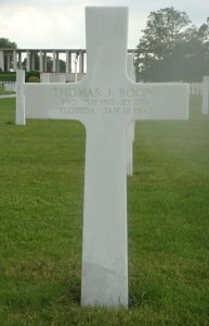 Pvt Thomas J. Boone enlisted at Camp Blanding, Florida on 27 December 1942.Source of information: Peter Schouteten, National Archives, ABMC, National Archives, Find A Grave