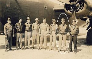 According to eye witness reports from crew members of other airplanes in the group, this B-24 was hit by flak southwest of Brussels and disintegrated in the air. Not one of the nine crew members had the chance to bail out and packed parachutes and other flying equipment were seen to fall out of the plane as it exploded. It fell in peaces near a hospice in Rue du Paloke, Molenbeek-Saint-Jean