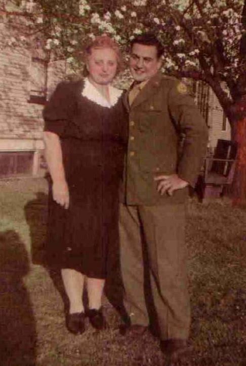 The lady in the picture is his mother. It was taken just before he went overseas.