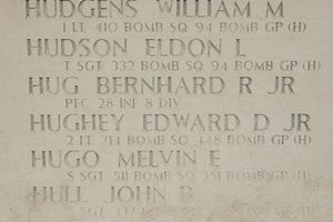 Lt. Hughey grew up helping his father on a farm outside of Navasota, Texas and at times also worked as a carpenter. He attended the Agricultural and Mechanical College of Texas (now Texas A&M University) with the Class of 1941, majoring in petroleum engineering.He volunteered for the Air Corps of the Army of the United States in Houston, Texas on 10 April 1942.