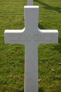 Cpl Anderson was first buried at the Temporary American Military Cemetery of Fosse, Belgium.
