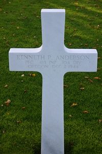 Pfc Kenneth R. Anderson attended college beofre he joined the US Army Reserve at Fort Lewis, Washington on 25 March 1943.Source of information: Raf Dyckmans, Peter Schouteten, Carla Mans, www.wwiimemorial.com, www.archives.gov - WWII Enlistment Record, www.ancestry.com - U.S., Headstone and Interment Records for U.S. Military Cemeteries on Foreign Soil / 1940 Census / U.S. WWII Draft Cards Young Men