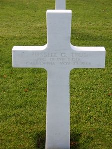 Pfc Russell G. True attended college for two years and worked on a dairy farm.He enlisted in Sacramento, California on 20 August 1942. He joined the paratroopers but was transferred to the infantry after being injured in a jump. He first saw action in China and the Philippines and was wounded on 15 October 1944 in Germany for which he was awarded the Purple Heart Medal a first time.