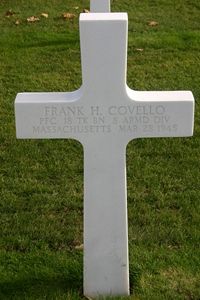 Pfc Frank H. Covello enlisted at Fort Devens, Massachusetts on 18 May 1943.Source of information: Peter Schouteten, Raf Dyckmans, Terry Hirsch, Carla Mans, www.wwiimemorial.com, www.archives.gov, www.8th-armored.org, www.ancestry.com - Headstone and Interment Record / 1930 Census / U.S. WWII Draft Cards Young Men / WWII Enlistment Record, IDPF