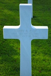 Pvt Harry B. Cox attended Coshocton High School and worked for the Barnes Mining Co.He enlisted in Columbus, Ohio on 3 August 1943.