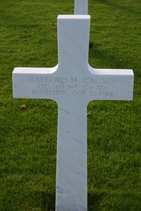 Pfc Rayford H. Causey was employed at a large aluminium manifacturing plant.He enlisted in Camp Shelby, Mississippi on 11 November 1942. He was sent overseas in September 1944.