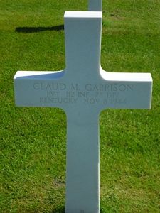 Pvt Claud M. Garrison attended Winchester High School and was a clerk. He enlisted in Louisville, Kentucky on 28 March 1942.On 18 November his body was found in a field grave in the forest 1 km southeast of Vossenack.