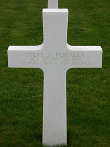 The citation for his Distinguished Service Cross stated: For extraordinary heroism in connection with military operations against an armed enemy while serving with Company C, 119th Infantry Regiment, 30th Infantry Division, in action against enemy forces on 27 February 1945. SgtPuhalla's intrepid actions, personal bravery and zealous devotion to duty at the cost of his life, exemplify the highest traditions of the military forces of the United States and reflect great credit upon himself, the 30th Infantry Division, and the United States Army.