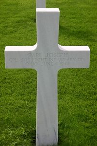 Carl Joseph enlisted in Toledo, Ohio on 6 October 1942. He fought in Africa, Italy and Sicily with the 82nd Airborne. He was killed in Normandy but at that time could not be identified. Fort this reason, his remains were transferred to the identification center at Ardennes Cemetery in Belgium. After identification, he was given his final resting place at Ardennes Cemetery.Source of information: Carla Mans, www.archives.gov, www.wwiimemorial.com, www.ww2-airborne.us, www.ancestry.com - Headstone and Interment Record / U.S. WWII Draft Cards Young Men / 1930/1940 Census