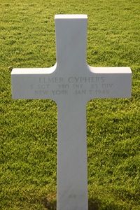 S/Sgt Cyphers joined A Company from the 41st Replacement Battalion on 19 July 1944. He was lightly wounded in action on 8 August and rejoined his unit on 17 August 1944. On 16 December he was transferred to a hospital for a non-battle injury but again returned to his unit in a few days.On 7 January 1945 he was reported missing in action. His body was found in March 1945, two miles east of Malempré. He was killed by a shotgun wound to the chest.