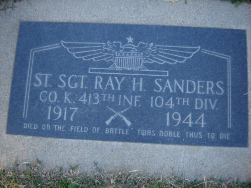 The order to advance in the general direction of Zundert, the Netherlands, was given at 0600 hrs. At 1100 hrs when patrols were going past the first advancing line, Company K ran into sniper and mortar fire. S/Sgt Sanders was one of the first casualties of his company and one of the 3 first casualties of the battalion. He died of a head shot wound.
