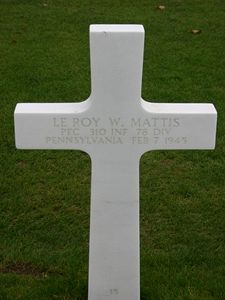 Pfc Le Roy W. Mattis graduated from Spring Valley High School and was employed at Jacobs Aircraft Engine Company.He enlisted in Philadelphia, Pennsylvania on 19 June 1944 and was sent overseas in November 1944.