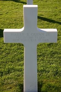 Harry B. Quinn graduated from Cape Elizabeth High School. Entered the University of Maine in the class of 1944. Inducted into the army in Maine on 7 June 1943. He received his basic training at Camp Gordon, Georgia. He returned to the University of Maine under the Army Specialized Training Program, to January 1944. Transferred to Officer's Training School, Infantry, Fort Benning, Georgia, to May 1944. He was promoted to First Lieutenant, January 1945.He was first buried at Block B4, Row 3, Grave 57.