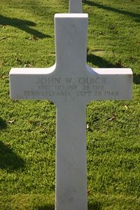 Pfc John W. Quick enlisted in Philadelphia, Pennsylvania on 26 September 1940.Source of information: FOHF, Carla Mans, www.wwiimemorial.com, www.fold3.com, www.ancestry.com - Headstone and Interment Record / Veteran Compensation Application Files / WWII Enlistment Record
