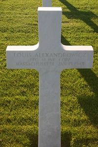 Pfc Louis Alexandrowicz enlisted at Fort Devens, Massachusetts on 30 March 1944.Source of information: Peter Schouteten, Raf Dyckmans, www.wwiimemorial.com, www.archives.gov, www.ancestry.com - U.S. WWII Draft Cards Young men / Headstone and Interment Record, www.history.army.mil/html/bookshelves/resmat/ww2list.html