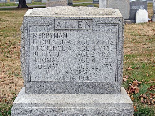 Pfc Norman E. Allen was employed by the Continental Diamond Fibre Company.He enlisted in Baltimore, Maryland on 20 August 1943.
