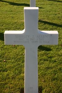 Pfc Shirley J. Allen attended 2 years of high school, worked as a general farmer and was single, with dependents.He entered the Service from Camp Forrest, Tennessee on 19 December 1942 as a Private.