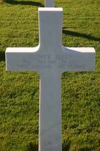 Pfc Sidney Allen enlisted in Fort Thomas Newport, Kentucky on 24 March 1944.Source of information: Peter Schouteten, Julie Angle, Carla Mans, www.wwiimemorial.com, www.archives.gov - WWII Enlistment Record, http://75thdivisiondad.com/kia_roster.htm#1, www.ancestry.com - Headstone and Interment Record
