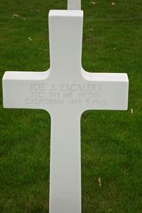 Pfc Joe J. Escalera enlisted at Ft MacArthur, San Pedro, California on 27 June 1944.Source of information: Astrid van Erp, www.wwiimemorial.com, www.fold3.com, www.archives.gov – WWII Enlistment Record, www.ancestry.com - 1930 Census, Headstone and Interment Record, California Birth Index, 1905-1995,