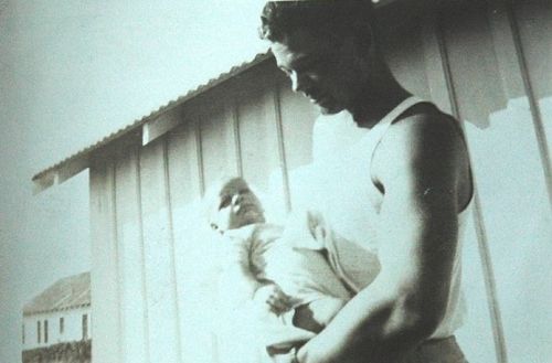 On one picture, Capt Estes poses with his new born sun Michael. On another picture, his comrade Lt. Mulder poses with his wife who holds Capt Estes's son.