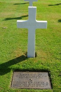 Also T/Sgt Schroeder gave a statement and he believed there were still three men in the plane when it hit the ground, The pilot Lt Wollstein, the co-pilot Lt Smith and the bombardier Lt Owens. Because of the fact that the remains of Lt Owens and Lt Wollstein couldn't be identified seperately and that their remains are buried together at Ardennes, it is certain his statement must be right.