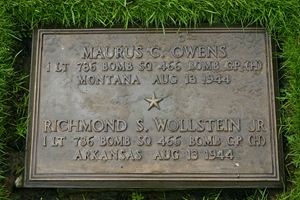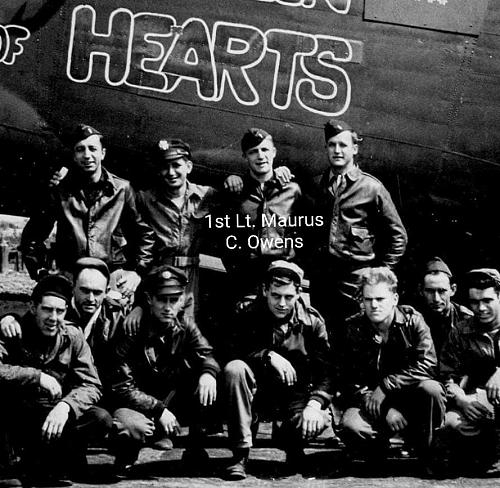 Maurus C. Owens graduated from Missoula County High School and attended the University of Montana.He was employed by the Coca-Cola company when joined the Air Corps of the U.S. Army Reserve in Missoula, Montana on 13 May 1942. After pilot and navigation training, he was commissioned as second lieutenant in January 1944 at San Marcos, Texas, and went overseas in April of the same year.
