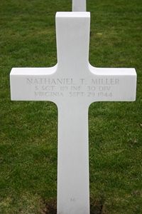 Nathaniel T. Miller enlisted on 1 October 1941 in Roanoke County, Virginia.Source of information: Astrid van Erp, Carla Mans, www.wwiimemorial.com, www.findagrave.com, www.ancestry.com - 1920/1930/1940 Census / U.S. WWII Draft Cards Young Men