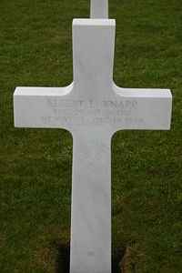 Pfc Knapp went overseas in 1944, in action before the Battle of the Bulge and was wounded on 4 December 1944. He died in a hospital on 14 December 1944.