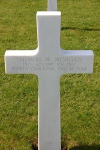 His granddaughter Kathy Spinella says, "He loved cars and was working as a mechanic at the time he registered for the draft. By all accounts, he was an "old" man as he turned 30 prior to being sent overseas for their final training in England. Wilson, as he was called, was a gentle man who left behind a wife and a young daughter who was 4 at the time of her father's death."Pfc Morgan must have been on leave when he was killed by a V-2 rocket that destroyed the Rex movie theatre in Antwerp.