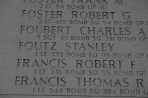 Stanley Foutz graduated from West High School and the University of Utah.He joined the U.S. Army Reserve in June 1940 and was an assistant induction and recruiting officer in Salt Lake City before taking flight training and receiving his wings and commission on 25 November 1942 at Rowell Field, New Mexico. He was sent overseas in April 1944.
