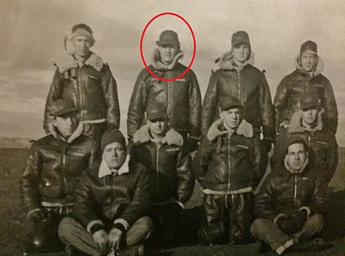 The airplane was shot down by enemy aircraft and flak, which knocked out two engines. The entire crew of ten men was killed.