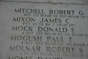 Donald Mock volunteered for the Army of the United States at Fort Benjamin Harrison, Indiana on 16 June 1942.Source of information: Raf Dyckmans, www.wwiimemorial.com, www.fold3.com - MACR, www.ancestry.com - 1940 Census / Birth Certificate