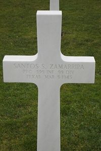 Pfc Santos S. Zamarripa was awarded the Bronze Star Medal posthumously for meritorious service in connection with operations against the enemy from 10 December 1944 to 14 February 1945. The medal was presented to his wife.Source of information: Astrid van Erp, Sheree Dowdle, www.wwiimemorial.com, www.archives.gov, www.ancestry.com - U.S. WWII Draft Cards Young Men / 1930/1940 Census, The Austin American - 7 October 1945