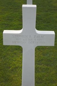 Pvt Stephen F. Zalac enlisted on 1 July 1943 in Pittsburgh, Pennsylvania. He was stationed at Camp Van Dorn, Mississippi and had been overseas since May 1944.Source of information: Carla Mans, www.wwiimemorial.com, www.ancestry.com - WWII Enlistment Record / Costa Family Tree / Headstone and Interment Record, www.newspapers.com - McComb Daily Journal 7 September 1944 / 20 November 1944