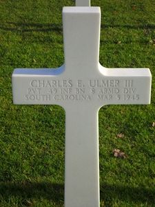 Pvt Charles E. Ulmer III enlisted at Fort Bragg, Cumberland County, North Carolina on 30 March 1944.Source of information: Peter Schouteten, John T. Gerlosky, Astrid van Erp, www.wwiimmemorial.com, www.archives.gov,