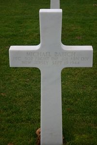 Michael Babich enlisted on 23 January 1942 at Fort Dix in New Jersey.Pfc Michael Babich was first buried at the Temporary American Military Cemetery of Son, The Netherlands.