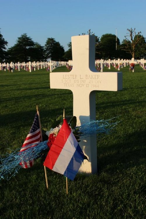 S/Sgt Lester L. Baker worked on a farm before he enlisted in Dallas, Texas on 22 November 1943 and sent overseas in August, 1944.The IDPF of S/Sgt Baker mentions that he died of wounds in Kerkrade, Germany on 17 November 1944. Since Kerkrade is in The Netherlands, this information is wrong. Therefore the place were his unit fought on the given day is mentioned as the place of death. The only other explanation could be that he was wounded on an earlier date and that he was evacuated to Kerkrade, where he then died of his wounds.