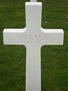 Jose Baltier was born in Mexico and not yet a US citizen when he enlisted in Los Angeles, California on 22 March 1944. He worked on a farm and was married.Source of information: Peter Schouteten, Astrid van Erp, www.wwiimemorial.com, www.archives.gov, www.ancestry.com - Headstone and Interment Record, WWII Draft Cards